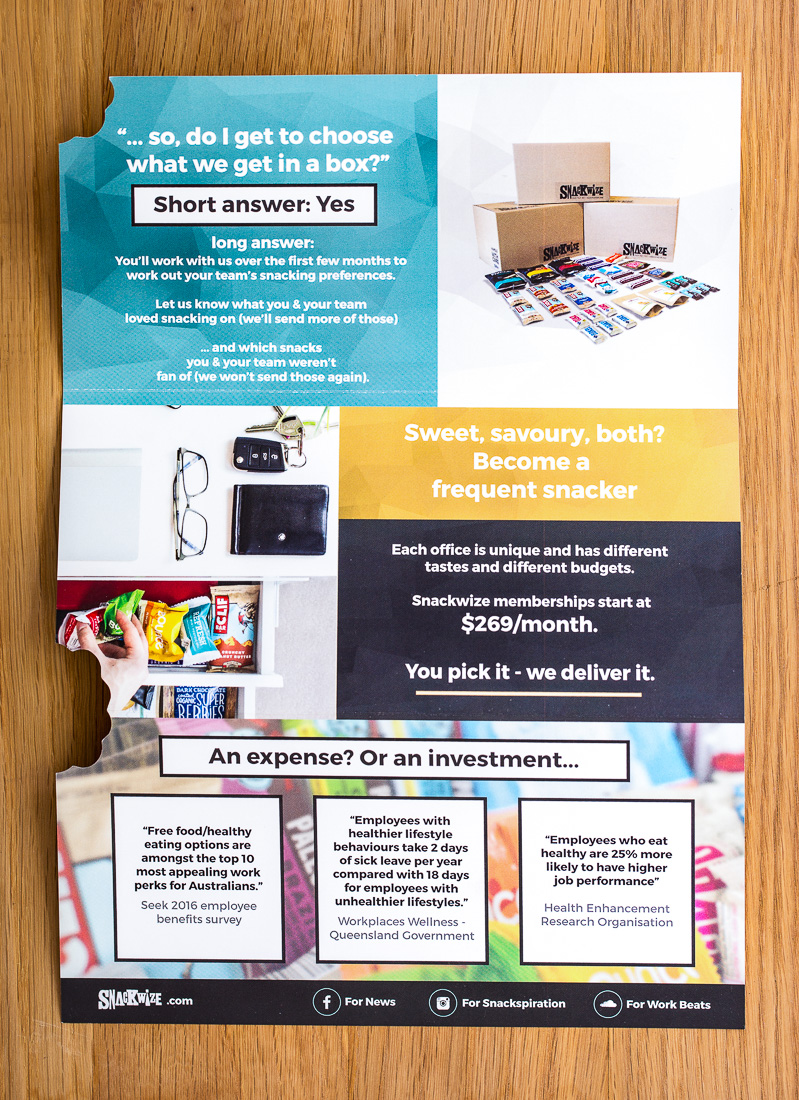 Premium, super-food snacks such as protein bars, muesli bars, nuts and paleo-friendly snacks are hand-picked by Reynolds and delivered personally to offices around South-east Queensland.