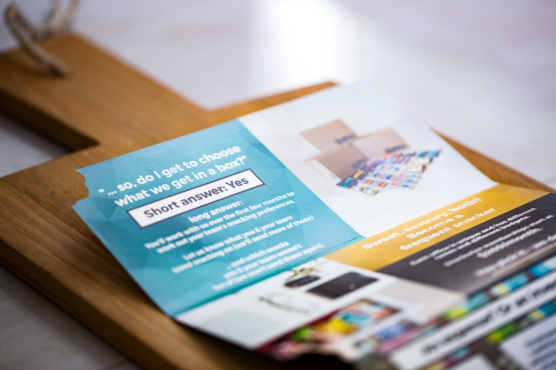 Originally supplied with a monochrome logo, Feels good Creative developed a brand identity that evoked a cool, yet professional feel that aimed to appeal to trend-oriented employers who wished to invest in adding workplace value for their employees by investing in supplying healthy snacks for their team.
